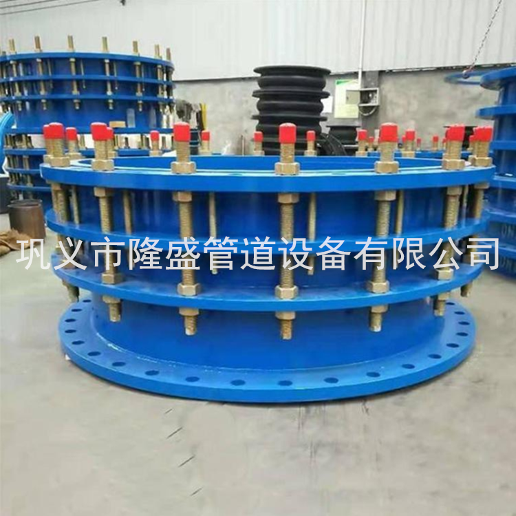 可拆式双法兰传力接头在安装时需调节产品两端与管道两边的安装长度,在安装和焊接完毕后,对角依次拧紧压盖螺栓,双法兰传力接头是由本体、密封圈、压盖、伸缩短管等主要部件组成。
