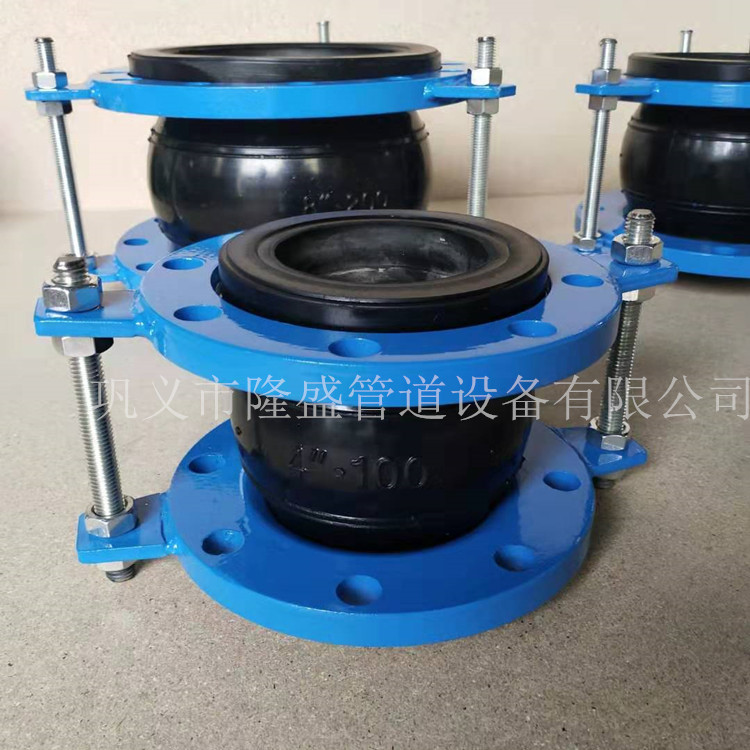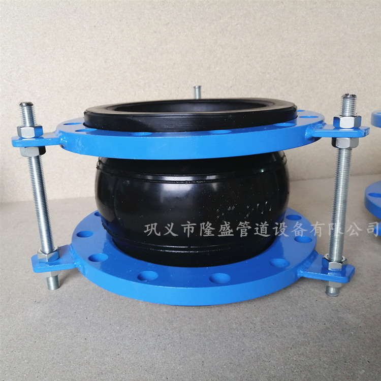 防拉脱限位橡胶接头是在可曲挠橡胶接头的基础上加置了限位装置,起到了防拉脱的作用,属于柔性连接件,在不影响可曲挠橡胶接头的正常使用的同时还保护产品在管道中的使用安全,主要适用于管道压力大的排水管道中,限位装置其中包含了耳板,限位螺栓,螺母等,耳板焊接到法兰上面,对称安装螺栓螺母即可,保护橡胶接头在使用过程中出现拉脱等现象。