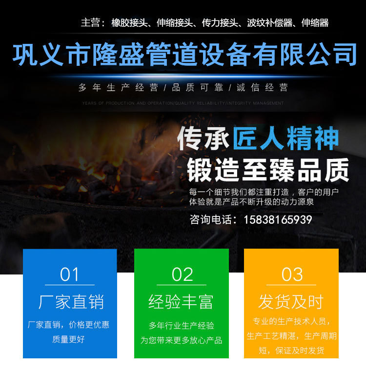 市场生存唯品质!如何让隆盛【柔性防水套管】可靠,创造更大客户价值,为提供重研发的产品,才是隆盛人致力追求的方向!重创新是隆盛管道的生存之基!天道酬勤、地道酬善、人道酬诚! 隆盛人愿与朋友携手共筑中国梦,顺祝客户朋友所得皆所期,所失皆无碍!祝福贵司品获百分赞,业盈万千金!!